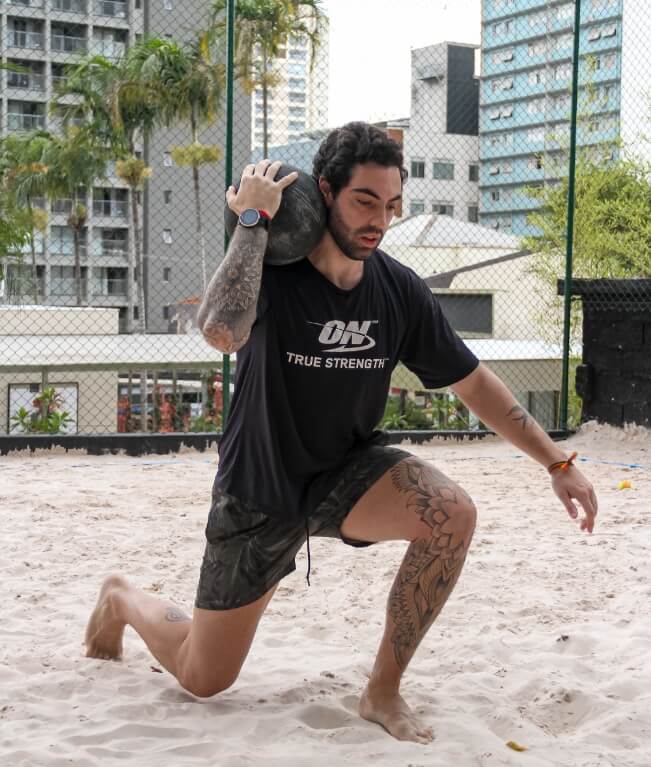 O treinamento funcional tem como objetivo melhorar a habilidade de realizar as atividades da vida cotidiana. Quando realizado na areia, o funcional usa o próprio peso do corpo e, acessórios básicos de treino, para gerar sobrecarga, além de oferecer menor impacto por conta da areia.